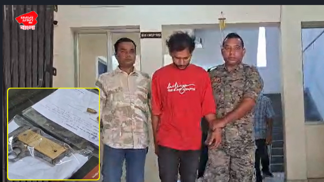 এরপর তল্লাশি করতেই তার কাছ থেকে বাজেয়াপ্ত করা হয় একটি সেমি অটোমেটিক পিস্তল এবং দুটি তাজা কার্তুজ ।
