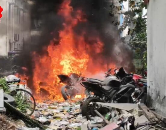শিলিগুড়ি , ২৪ ফেব্রুয়ারী : আগুনে পুড়ল বাজেয়াপ্ত করা মোটরসাইকেল । নকশালবাড়ি থানা চত্বরে আগুন । মূহুর্তে আগুন ছড়িয়ে পড়তেই আতঙ্কের পরিবেশ সৃষ্টি