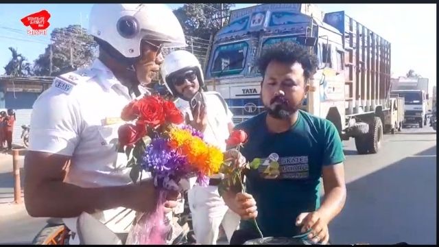 শিলিগুড়ি , ১৫ ডিসেম্বর : ট্রাফিক আইন মেনে চলতে এবার ভালোবাসার বার্তা | উদ্যোগ আশিঘর সাব ট্রাফিক গার্ড এর । শিলিগুড়ির ইস্টার্ন বাইপাস এলাকায় হেলমেট ছাড়া বাইক ও স্কুটি চালকদের আটক করে জরিমানা নয় , তাদের হাতে তুলে দেওয়া হল গোলাপ ফুল ও চকলেট ।